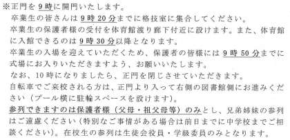 特に、卒業生および卒業生の保護者様には、お願いとお知らせがございますので、ご確認いただきますようお願いいたします。