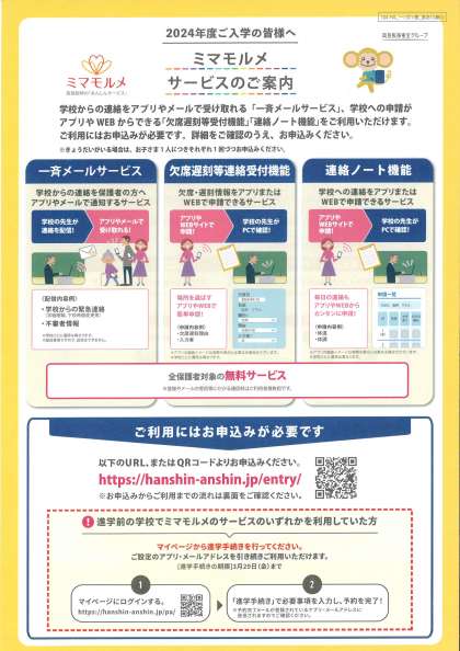 また、職員室内の回線にも限りがございますので、朝の遅刻・欠席連絡につきましては、積極的なミマモルメのご活用をお願いいたします。