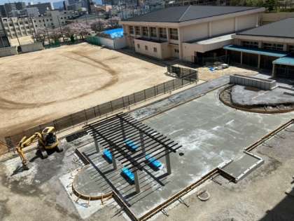 中庭のステージもかなり完成形の雰囲気がでてきました。