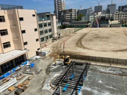 淀川小学校との境の桜も、少しずつ葉桜になってきました。
