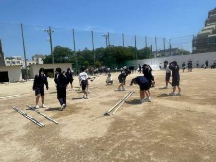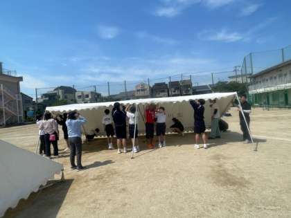 中間テスト終了後に専門委員会所属生徒とボランティアの生徒でテント設営を行いました。