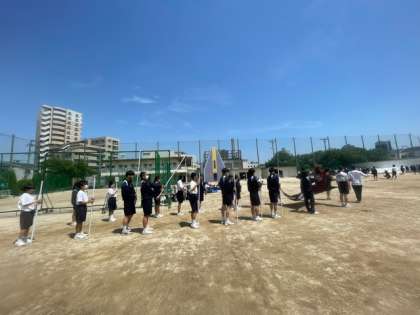また、体育委員は学級旗やプラカードの持ち方、選手宣誓の練習を行いました。