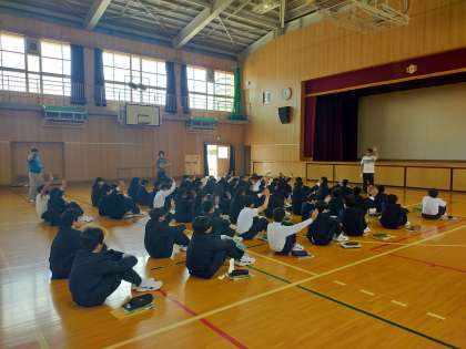 今日は1年生の学年集会で稲葉先生からの話を聞きました。