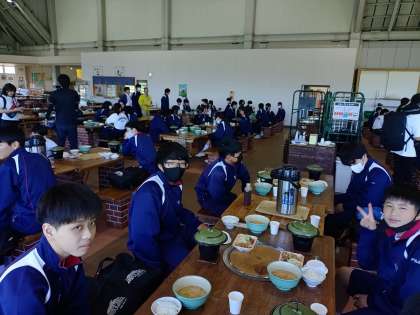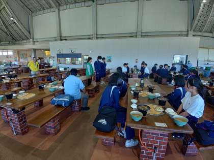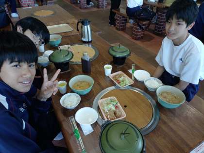 お昼は陶板焼きです。食事係の楽しいいただきますがありました。