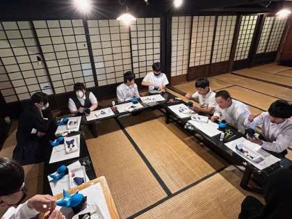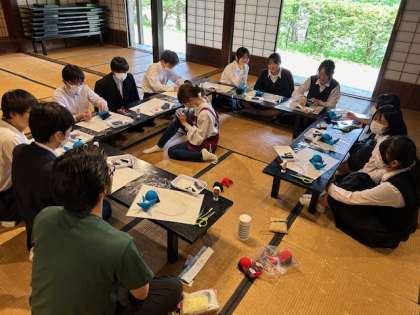 サルボボ作り 1組は旧田口家で体験しています。みんな真剣な表情をしています。