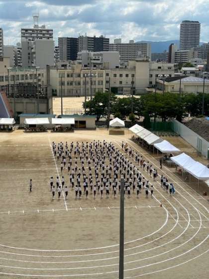 晴天のなか、体育大会予行がおこなわれました。