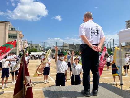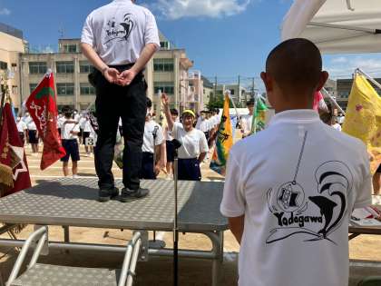 (PTA役員、元気アップの方とも同じデザインのポロシャツを着ていただいています)