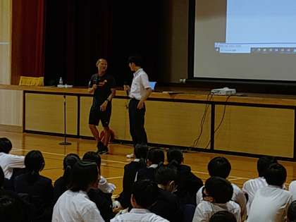 その後、2年生の先生が薬物乱用を誘う人に扮して生徒の代表とロールプレイングを行いました。