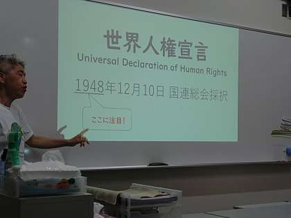 友渕中学校の人権教育主担の先生を講師にお招きして、人権学習の導入部分や基礎について研修しました。