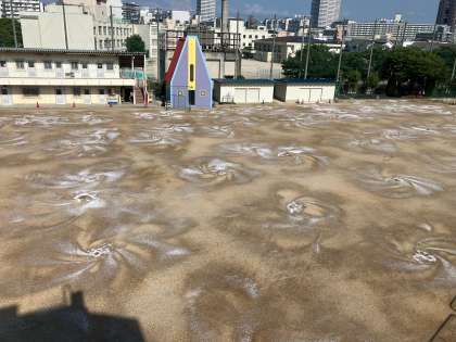 グラウンドの整地も終わり、にがりまきを済ませました。