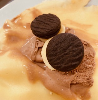 クレープは、バナナ、アイス、クッキー、チョコレートソースなどトッピングし、楽しく美味しくいただきました。