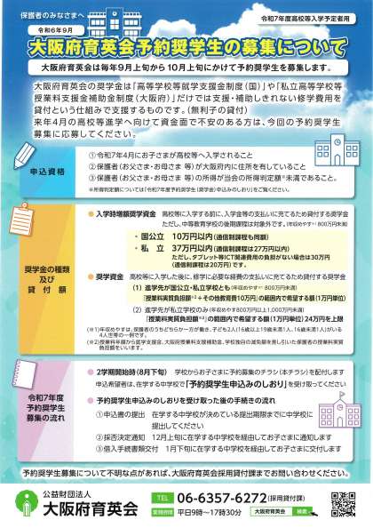 大阪府育英会予約奨学生の募集について