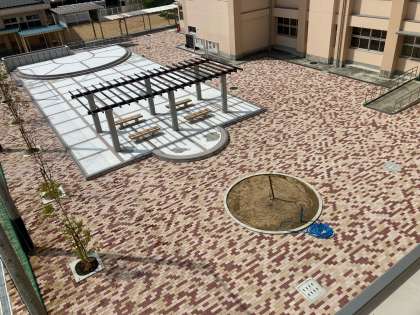 本日より、新・中庭を「憩いの場」として、全生徒が使えることになりました。