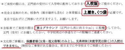 ★当日は「入校証」「上履き(スリッパ)」「(外靴をいれる)くつ袋」を必ずご持参ください。