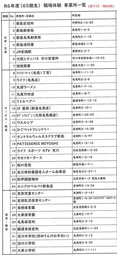 今回ご協力いただきました事業所様一覧を本校ホームページに掲載いたします。
