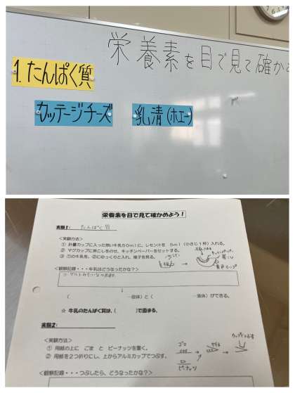 本日のテーマである「栄養素を目で見て確かめよう」を実験を通じて、楽しく、分かりやすく授業をされていました。