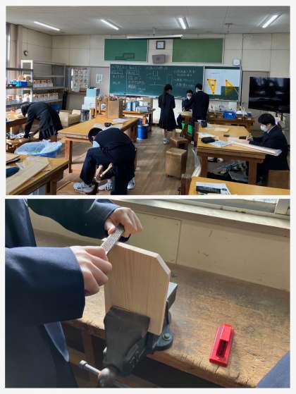 1限 1年1組 技術(本棚の制作)