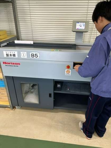 断裁機、製本機など初めて見る機械を自分で操作します。