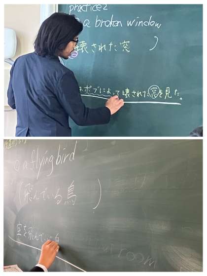 中学生にとって苦手意識を持つ難解な英文法を、分かりやすいプリントと板書を併用して、分かりやすく、丁寧に説明をされていました。