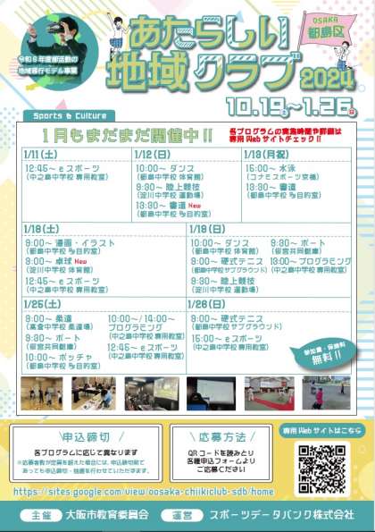 さて、現在大阪市の取り組みとして行っている「新しい地域クラブ」の開催におきまして、第4弾のチラシ及び案内がありましたので、チラシデータの送付をさせていただきます。