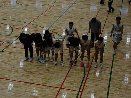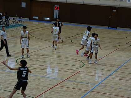 本日、本校男子バスケットボール部は東淀川体育館において大阪中学校バスケットボール大会に出場しました。本日は鯰江中学校との対戦でしたが、52対50と接戦を制し明日の試合に勝ち進みました。