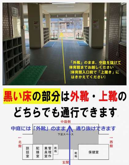 ・「入校証」「上履き(スリッパ)」「くつ袋」を必ずご持参ください