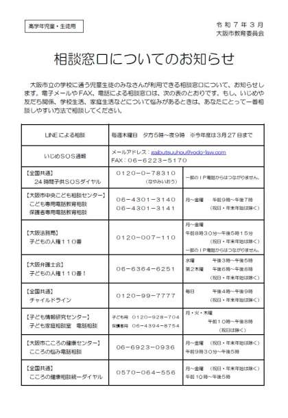大阪市教育委員会からのお知らせです。