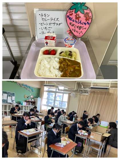 義務教育ラストの給食のメニューは「カレーライス」「いちご」でした。