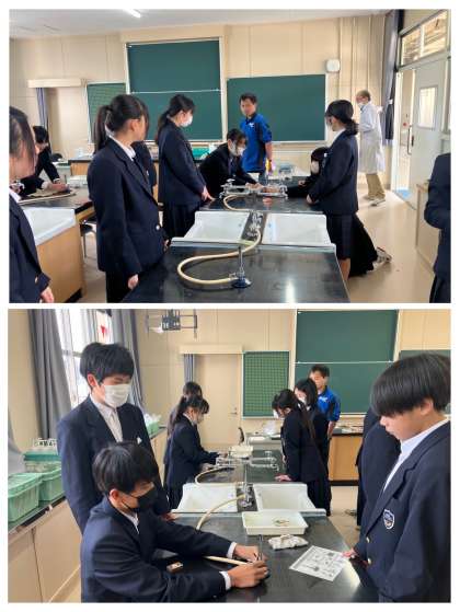 1年2組 理科(ガスバーナーの使い方〔新館・第1理科室〕)