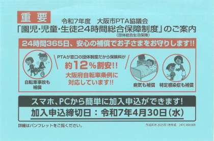 クリック→ 園児・児童・生徒24時間総合保障制度のご案内(水色の封筒)