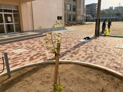 図書館の横の桜の木と新・中庭の桜の木の写真です。
