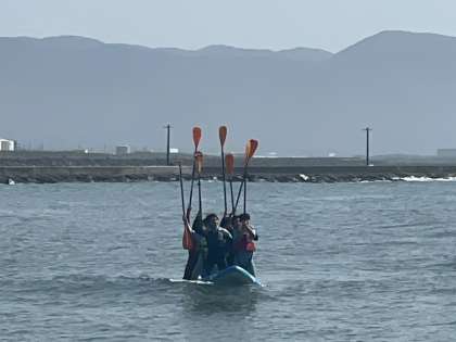 今度は10人程度乗ることができる大きなサップを楽しんでいました。