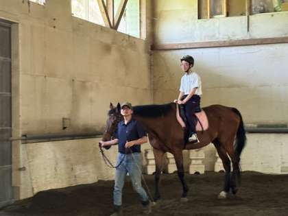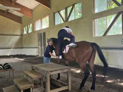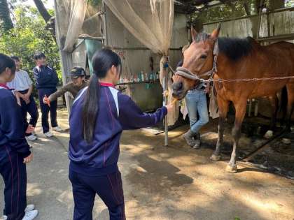 大きな馬に乗って乗馬を楽しんだり、にんじんやりを体験しました。