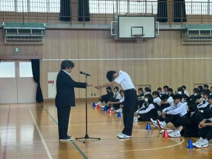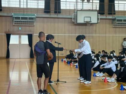 写真1、2枚目はバスケットボール部と陸上部の表彰の様子です。