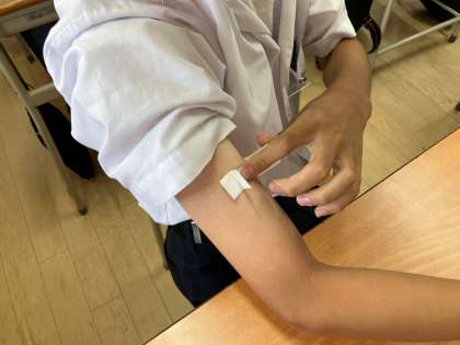 実験(パッチテスト)と講義をバランスよく織り込んだ、分かりやすい、活気のある授業でした。