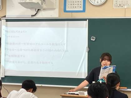 3限に2年1組で保健体育〔保健分野〕の研究授業をおこないました。