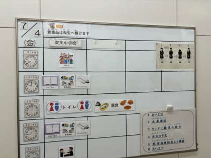 班ごとに分かれて、おしぼり加工、事務補助、印刷製本の3つの仕事を体験します。