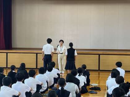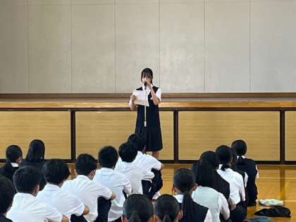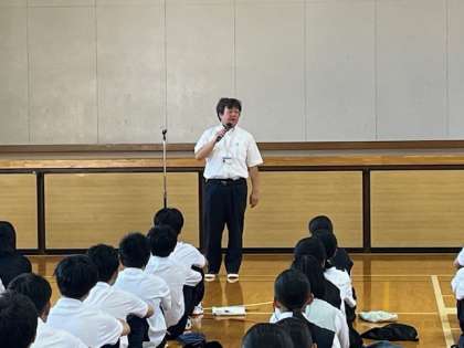 陸上部の表彰と教頭先生より悩みを抱え込まずに相談することの大切さについてお話しいただきました。