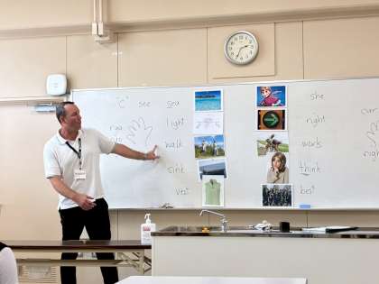 本日6時間目に私立高校の先生に来ていただき、出前授業を行いました。