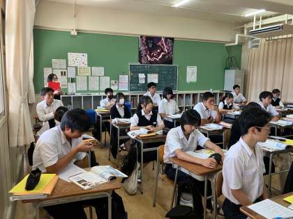 1限に3年2組で社会科の研究授業をおこないました。