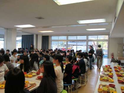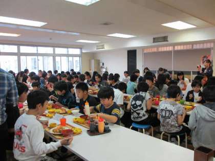 到着後は各自部屋での自由時間、その後入浴、そして食堂にて夕食を食べました。