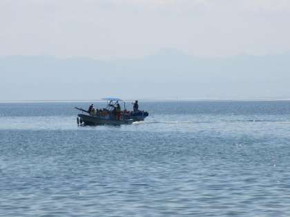 その後ようやくオールが左右におろされ、ようやくこぐ準備が整いました。ここまでが慣れていないとけっこう難しいです。