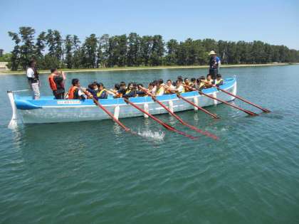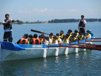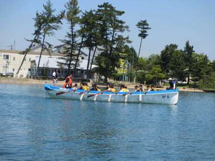 ようやく沖に向けて進みだしたカッターです。次第に要領を得始めたようです。しかし終わりの時間が来てしまいました。