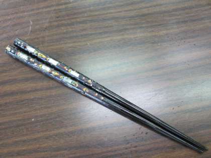 写真は箸作りに熱中する生徒たちとできあがった若狭塗りばしです。