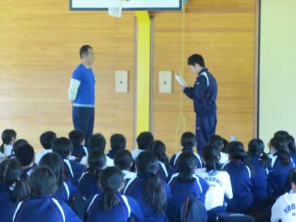 その後バスにて学校に帰り、体育館でまとめのお話、諸連絡等を行いました。
