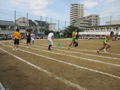続いても部活動リレーです。今回は陸上部、卓球部、野球部、バスケット部、男子剣道部が競い合いました。
