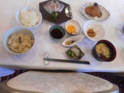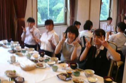 東京第一ホテルでは昼食をいただきました。二種類の鯛めし、一つは鯛の身の炊き込みご飯、もう一つは鯛の刺身をご飯に載せ、卵の黄身、ゴマとのりをのせてお出しをかけていただくもの、どちらもとてもおいしかったです。生徒たちも満足そうでした。