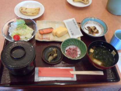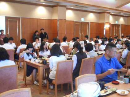 朝食と生徒たち、さらにお世話になったホテル「秘境の湯」です。