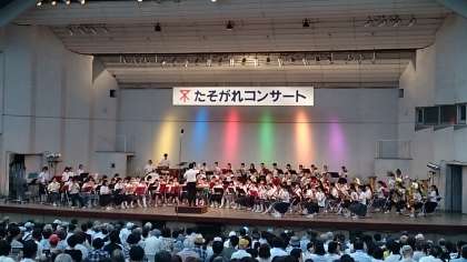 8月5日(金)三国、今津、歌島、新東淀、東淀、淀川中学校3年生による合同バンド。第2部のosaka shion wind orchestraの演奏の途中で雷注意報が出て、閉会になりましたが、第1部の中学生たちは暑さを吹き飛ばすようなフレッシュでパワフルな演奏で聴衆を魅了していました。