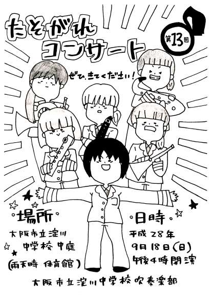 また、今年で13回目を迎える「淀川中学校たそがれコンサート」を本校中庭で9月18日(日)午後4時から行います。ご案内のポスターも掲載させていただきます。多数のご参加をお待ちしています。